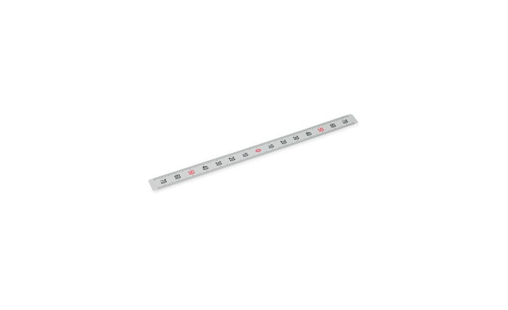 Durch das an der Rückseite angebrachte Klebeband lassen sich die Maßstäbe bzw. Bezugspfeile, nach Abziehen der Schutzfolie, auf allen geeigneten und sauberen Oberflächen befestigen. Die Oberseite der Edelstahl-Maßstäbe ist durch eine weitere Schutzfolie geschützt.