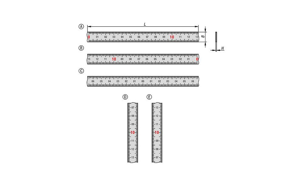 MAßBAND HORIZONTAL SELBSTKLEBEND, FORM:A NULLPUNKT LINKS, SKALIERUNG BEIDSEITIG 5000X10, H=0,5, T=1 MM,