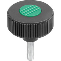 RÄNDELRAD GR.2, D1=50 D=M10X30 , FORM:L, THERMOPLAST SCHWARZGRAU RAL7021, KOMP:STAHL, DECKEL:GRÜN RAL6032