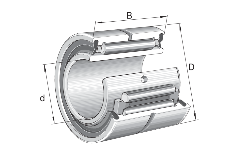 INA einreihige Nadellager mit Borden, Innenring und Schmierbohrung, beidseitig abgedichtet