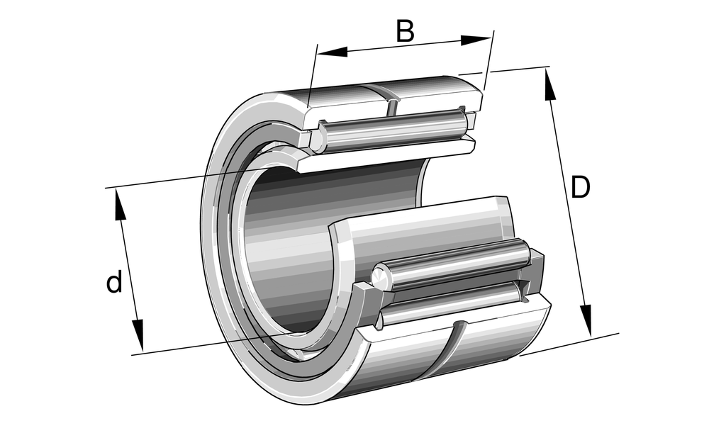 INA einreihige Nadellager mit Borden, Innenring und Schmierbohrung, offen