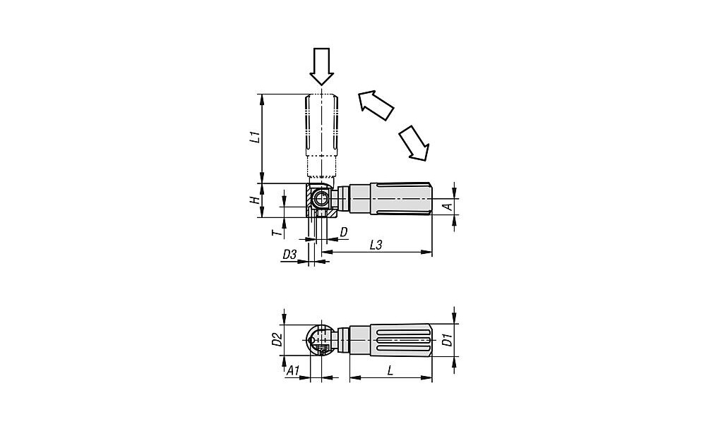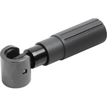 Zylindergriffe werden montiert geliefert und können z.B. an Handräder, Haspeln und Kurbeln angeschraubt werden. Der zylindrische Absatz und die konische Form verleihen den Zylindergriffen eine optimierte Haptik und gute Griffigkeit. Durch das selbsttätige Rückschwenken werden Störkonturen vermieden, wodurch zusätzlich die Verletzungsgefahr minimiert wird. Werkstoff: Griff Thermoplast. Achse Stahl. Ausführung: Griff schwarz. Stahlteile brüniert. Bestellbeispiel: K1470.104 Hinweis: Um den Sicherheits-Zylindergriff in die Bedienungsstellung zu bringen, sind zwei Stellvorgänge auszuführen: - Griff um die Drehachse bis zum Anschlag schwenken (90°). - Griff in axialer Richtung in die Arretierstellung drücken. Das selbsttätige Rückschwenken erfolgt nach dem Loslassen. Die Bohrung D3 wird als Positionierbohrung verwendet. Vorteile: Optimierte Haptik und gute Griffigkeit Griffe für Handräder und Kurbeln Selbsttätiges Rückschwenken nach Loslassen Verschiedene Gewindegrößen NOVO grip KIPP-Design