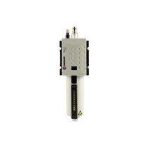 Nebelöler »FUTURA« mit Metallbehälter und Sichtrohr, BG 2, G 1/2, Eingangsdruck max. 16 bar, Temperaturbereich -10 °C bis 50 °C. Nebelöler in modernem Design mit hervorragenden Durchflusswerten. Das Gerät bietet die Möglichkeit der automatischen Ölnachfüllung. Hierzu muss am Gewindestutzen des Ölbehälters ein Schlauch angeschlossen werden. Bei Betätigung des Öleinfüllknopfs oben am Gerät öffnet sich eine Venturidüse, welche durch Unterdruck Öl in den Behälter saugt.