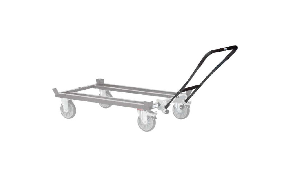 -Rohr-Schiebebügel, Zusatz-Ausstattung Der Einklink-Rohr-Schiebebügel ist zum bequemen rückenschonenden Verfahren von leeren und beladenen Paletten-Fahrgestellen.