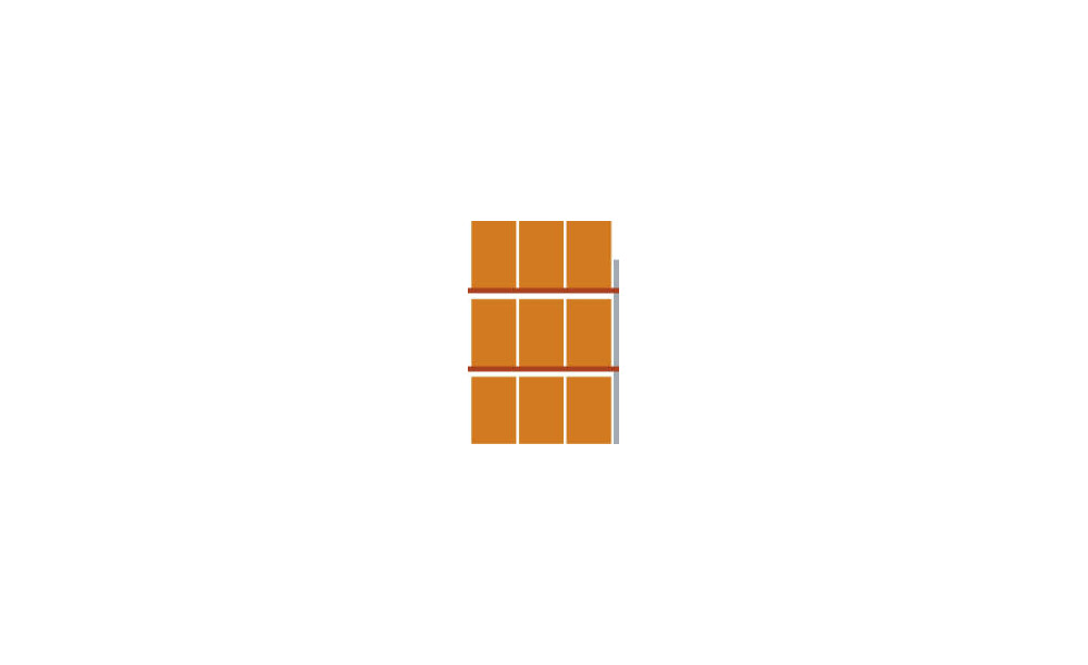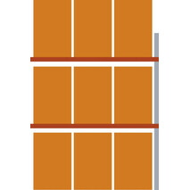 -Komplettregal mit 3 Lagerebenen Diese Palettenregale eignen sich für leichte bis mittelschwere Belastung. Die geschlossenen Kastenprofile garantieren eine hohe Stabilität und die Ständer bestehen aus kaltverformten Profilen, die bauseits mit der Ausfachung verschraubt werden. Eine Längs- oder Quereinlagerung ist möglich.