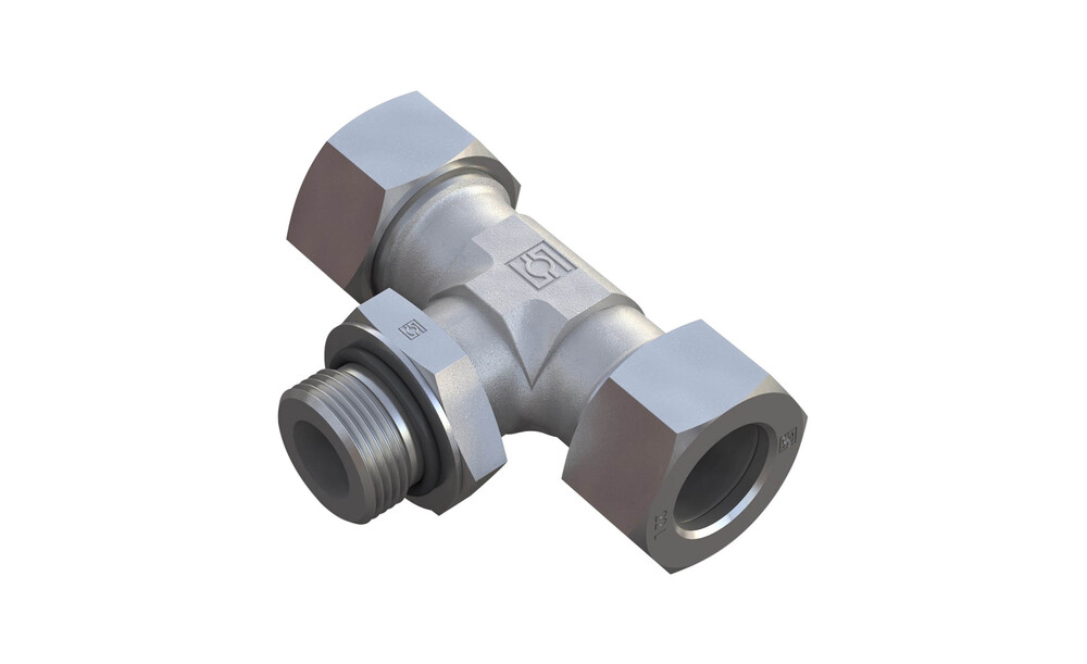 FI-TEE-10LM-OR-B-W3-MS, Einstellb. Verschr. mit Kontermu. Stahl