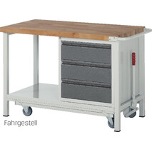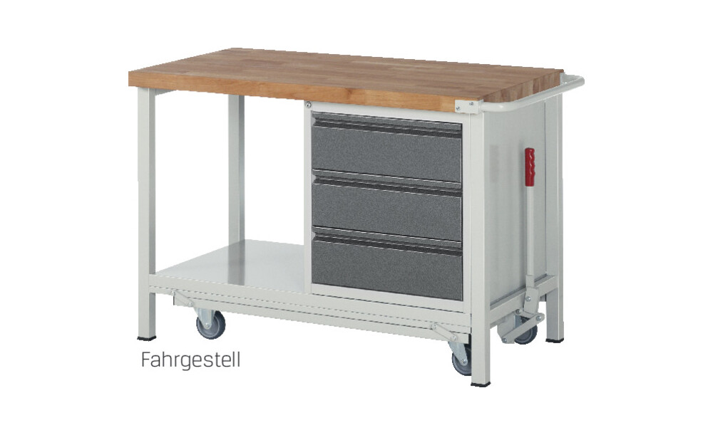 Mobile Werkbank PRETEC, Tiefe 700 mm, Gestell RAL 7035 lichtgrau / Einbauten RAL 5010 enzianblau
