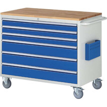 -Montagewagen Serie 7000 Diese Montagewagen verfügen über eine Buche-Massiv-Arbeitsplatte, Stärke 25 mm, mit geölter Oberfläche.