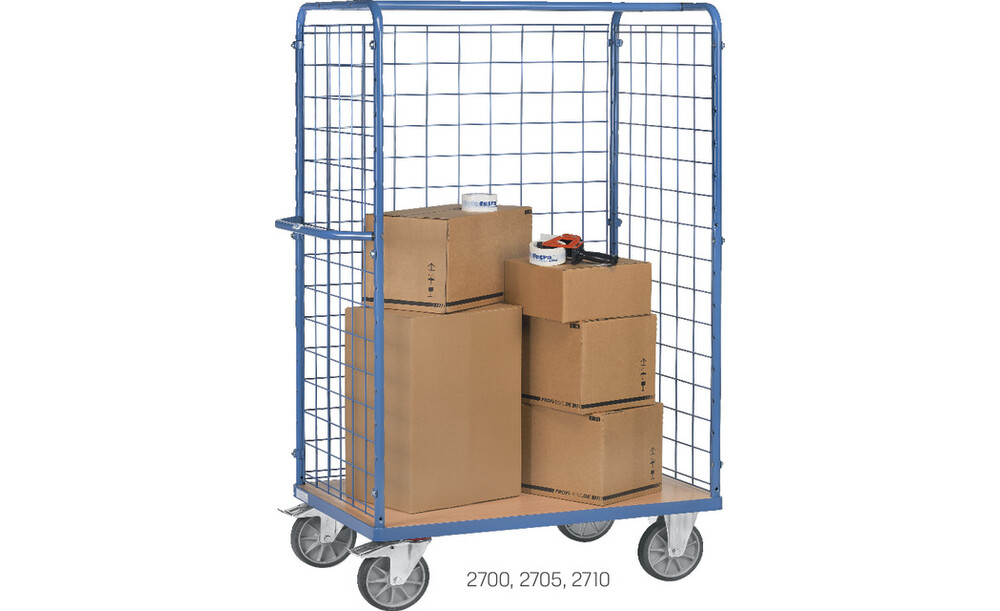 -Paketwagen mit Drahtgitterwänden ohne Dach Die Paketdreiwandwagen haben ein Tragkraft von 600 kg.