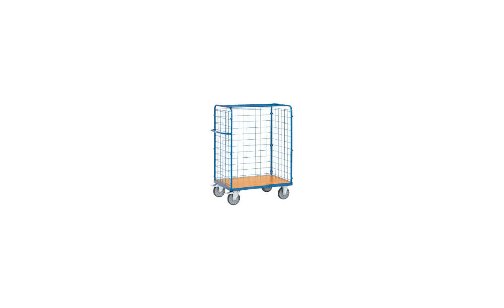 -Paketwagen mit Drahtgitterwänden ohne Dach Die Paketdreiwandwagen haben ein Tragkraft von 600 kg.