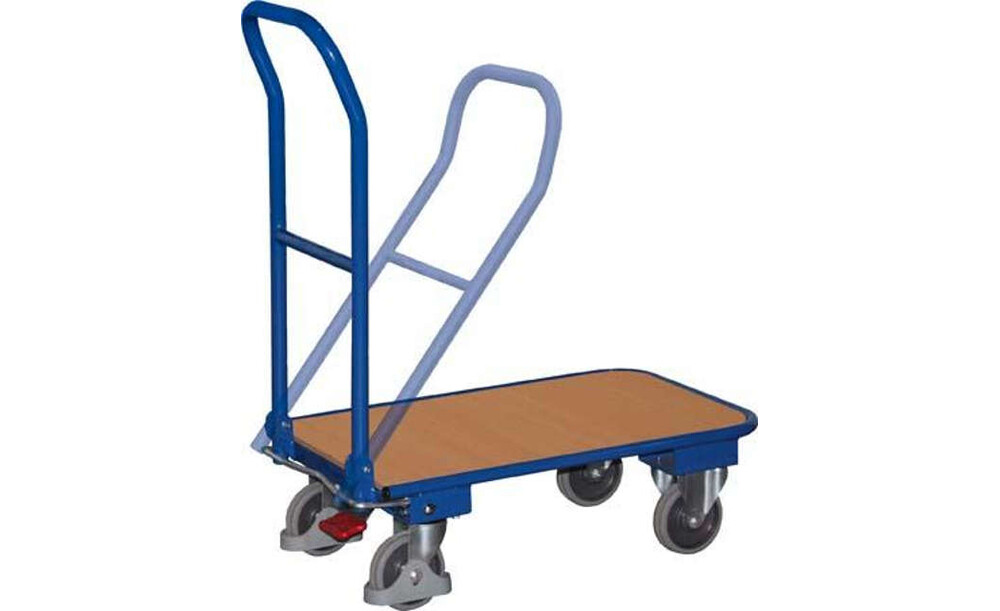 -Magazinwagen (Stahlrohr), klappbar Der Transportwagen verfügt über einen klappbaren Schiebebügel.