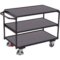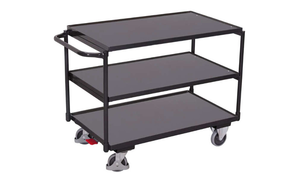 -Tischwagen, Tragkraft 250 kg Die Tischwagen sind serienmäßig mit einem Bremssystem ausgestattet.