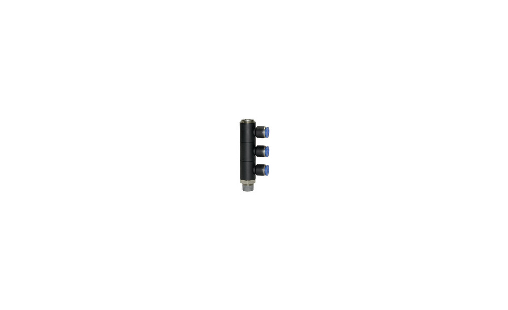 L-Mehrfachverteiler »Blaue Serie«, 3-fach, drehbar, R 1/8 a., für Schl.-Außen-Ø 6 mm, pmax kurzzeitig 15 bar, Kunststoff/MS vern.. Unsere Schnellsteckverbinder-Serie aus Kunststoff bzw. vernickeltem Messing. Die Teile sind einsetzbar in Verbindung mit Kunststoffschläuchen und Kunststoffrohren.