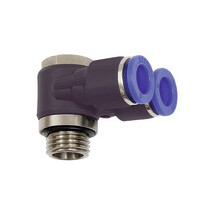 Y-Winkelsteckverschr. »Blaue Serie«, drehbar, G 1/4 a., für Schlauch-Außen-Ø 8 mm, pmax kurzzeitig 15 bar, Kunststoff/MS vern.. Unsere Schnellsteckverbinder-Serie aus Kunststoff bzw. vernickeltem Messing. Die Teile sind einsetzbar in Verbindung mit Kunststoffschläuchen und Kunststoffrohren.