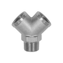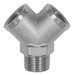 Verteiler, 2fach, Außengewinde R 3/8, Abgänge 2 x Innengewinde G 3/8, MS vernickelt, Betriebsdruck max. 60 bar, Temp. max. 150 °C.