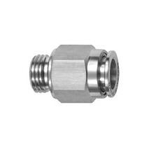 Gerade Steckverschraubung, Außensechskant, G 3/8 a., für Schlauch-Außen-Ø 8 mm, Arbeitsdruck -0,98 - 20 bar, Edelstahl 1.4404. Für den Einsatz in aggressiveren Umgebungen und bei korrosiven Medien. Die Eignungsprüfung für den jeweiligen Anwendungsfall obliegt dem Anwender.