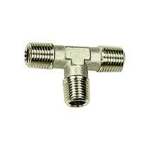 T-Stück, außen/außen/außen, R 1/4, SW 13, Betriebsdruck max. 60 bar, Betriebstemperatur max. 150 °C, Messing vernickelt.