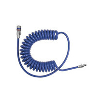 Spiralschlauch-Sicherheitskupplung-Set, PUR, Mediums-/Umgebungstemp. -20 °C bis 60 °C, Schlauch-ø 10x6,5, PN max. 10 bar, 4,0 m. Spiralisierter oder gerader Polyurethanschlauch komplett montiert mit Sicherheitskupplung NW 7,6 und Stahlnippel. Kupplung Sicherheitskupplung aus Stahl / Messing verzinkt für hohe Durchflusswerte, speziell konzipiert für alle Anwendungen mit hohem mechanischem Verschleiß. Starke, stoßfeste und vibrationsstabile Konstruktion für anspruchsvolle Anwendungen. Polyurethanschlauch Äußerst flexibler, extrem knickfester und schmutzunempfindlicher Spiralschlauch mit hoher Reiß-, Zug- und Stoßbelastbarkeit bei langer Lebensdauer und hervorragenden Alterungsqualitäten. Er verfügt weiterhin über einen hervorragenden Abriebwiderstand und ist UV-resistent. Nicht geeignet für die direkte Montage an pulsierendem Werkzeug. Wir empfehlen die Verwendung unserer Vibrationsdämpfer, gemäß ISO 6150, § 7.1.