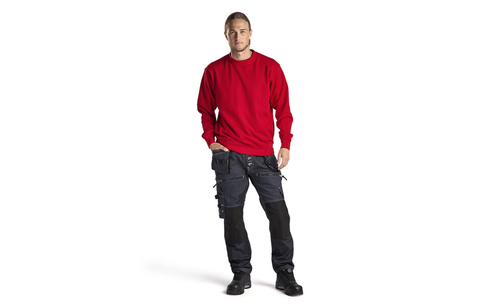 Komfortables Sweatshirt mit rundem ripp-gestrickten Hals und verstärkter Halsnaht. Verstärkte Schulternaht und Bündchen am Ärmelabschluss und am Saum des Shirts.