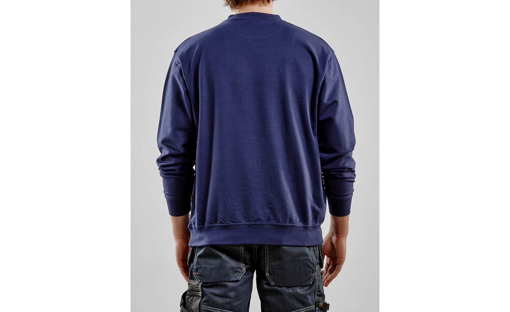 Komfortables Sweatshirt mit rundem ripp-gestrickten Hals und verstärkter Halsnaht. Verstärkte Schulternaht und Bündchen am Ärmelabschluss und am Saum des Shirts.