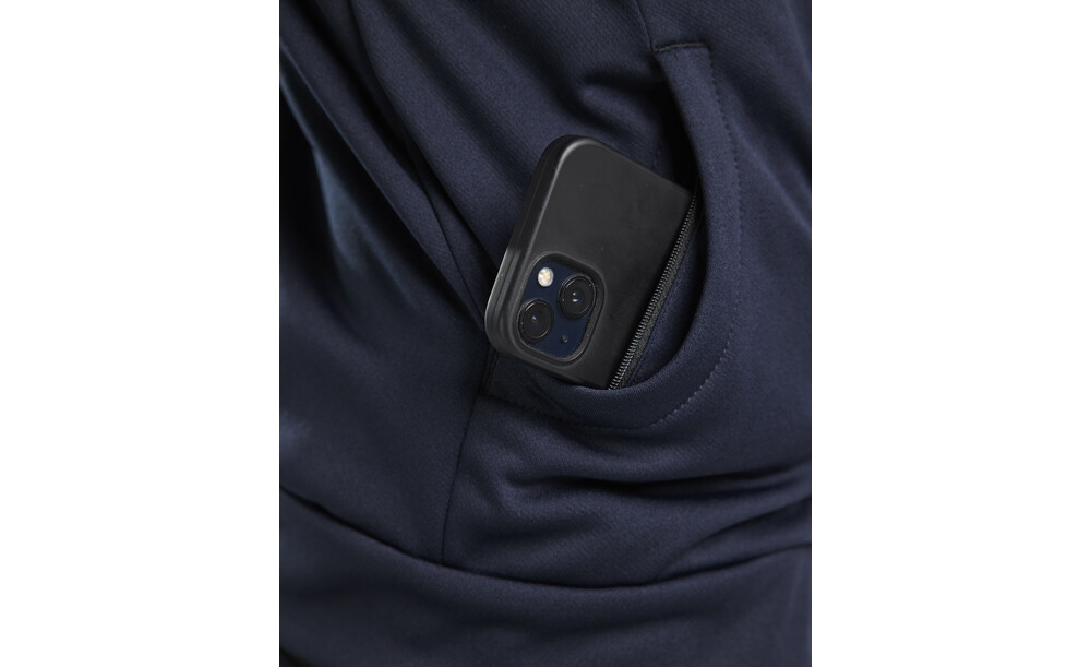 Gemütliche Sweatjacke mit weichem, aufgerauten Innenfutter, hohem Kragen und zwei Seitentaschen. Praktische Handytasche mit Reißverschluss.