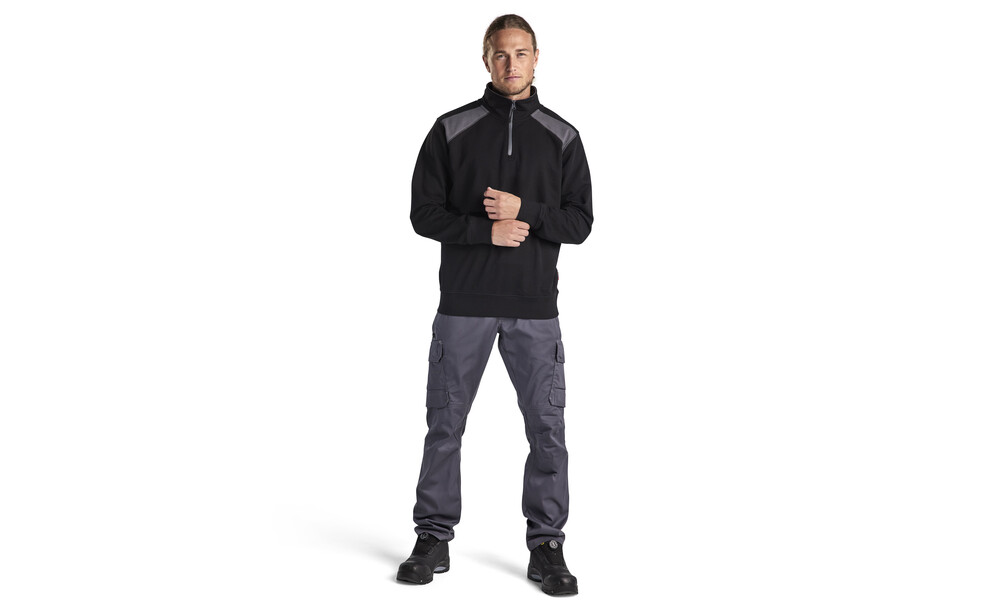 Ein komfortabler und flexibler 2-farbiger Sweater mit hohem Kragen und Reißverschluss. Passt perfekt zu unserer Industrie Kollektion.