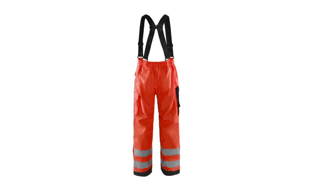 Eine Regenhose in High Vis für all jene mit Arbeitsaufgaben, die robuste aber bewegliche Regenkleidung erfordern. Die Hose ist wind- und wasserdicht mit verschweißten Nähten. Sie hat eine gute Passform mit breitem Gummiband am Rücken, verstellbare und abnehmbare Hosenträger mit Gummiband und einstellbare Beinenden mit Knöpfen. Leicht zugängliche Taschen, wie eine Beintasche mit Balg und Patte, Zollstocktasche mit extra Tasche und Messehalter und Öffnung mit Patte, um heraushängende Nageltaschen zu ermöglichen. Die Hose ist an den Knien und an der Wade verstärkt. Zertifiziert nach EN 343, Schutzkleidung vor schlechtem Wetter und EN ISO 20471, Klasse 2, Schutzkleidung mit hoher Sichtbarkeit. Die Farben 4600 und 9900 sind nicht nach EN ISO 20471 zertifiziert. Die Farben 3300, 4600, 5300 und 9900 wurden aktualisiert. Das ältere Modell wird solange der Vorrat reicht, ausgeliefert. Für das aktualisierte Modell in Farbe 4600 und 9900, schauen Sie sich den Artikel 1305 an.