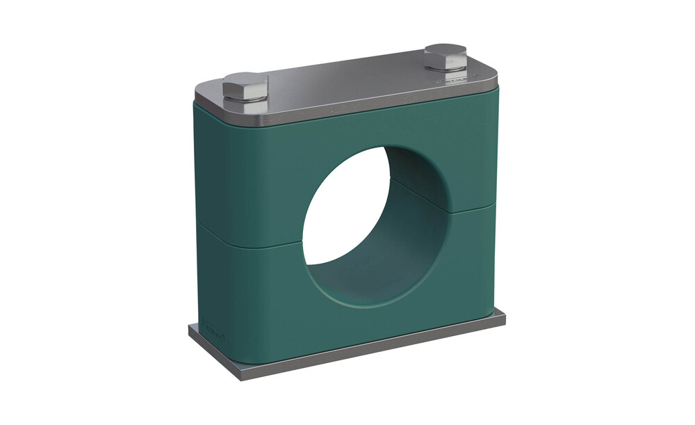 Komplettschelle Standard-Baureihe Gr. 4 Ø28mm Polypropylen W4 Deckpl., AS-Schraube Anschweißpl., kurz