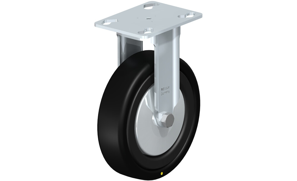 Apparate-Bockrolle mit Anschraubplatte, Rad mit Vollgummireifen, mit Kunststoff-Felge, mit Fadenschutz aus Stahl, elektrisch leitfähig
