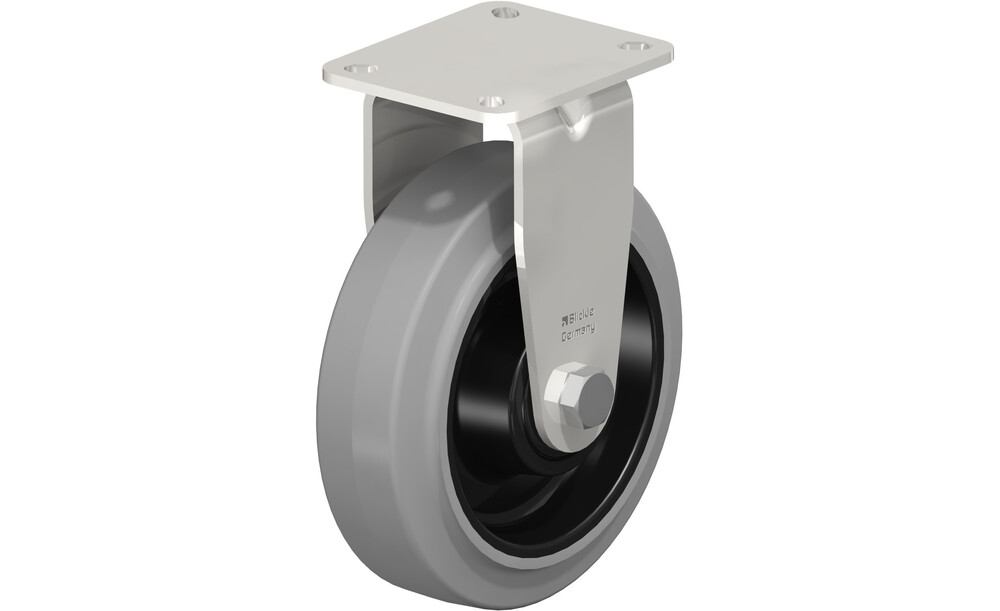 - Normhochwertiger Chromnickelstahl (1.4301/AISI 304), rostfrei, hochwertiges Polyamid 6, Elastik-Vollgummi, Blickle EasyRoll