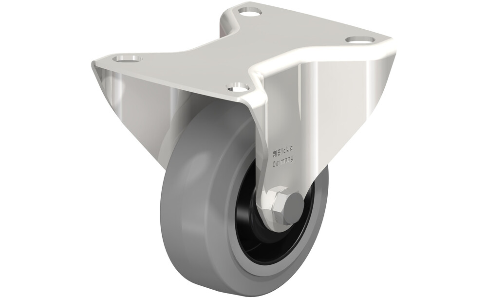 - Reifen: hochwertiger Elastik-Vollgummi "Blickle EasyRoll" in Leichtlaufqualität, Härte 65 Shore A, Farbe grau, spurlos