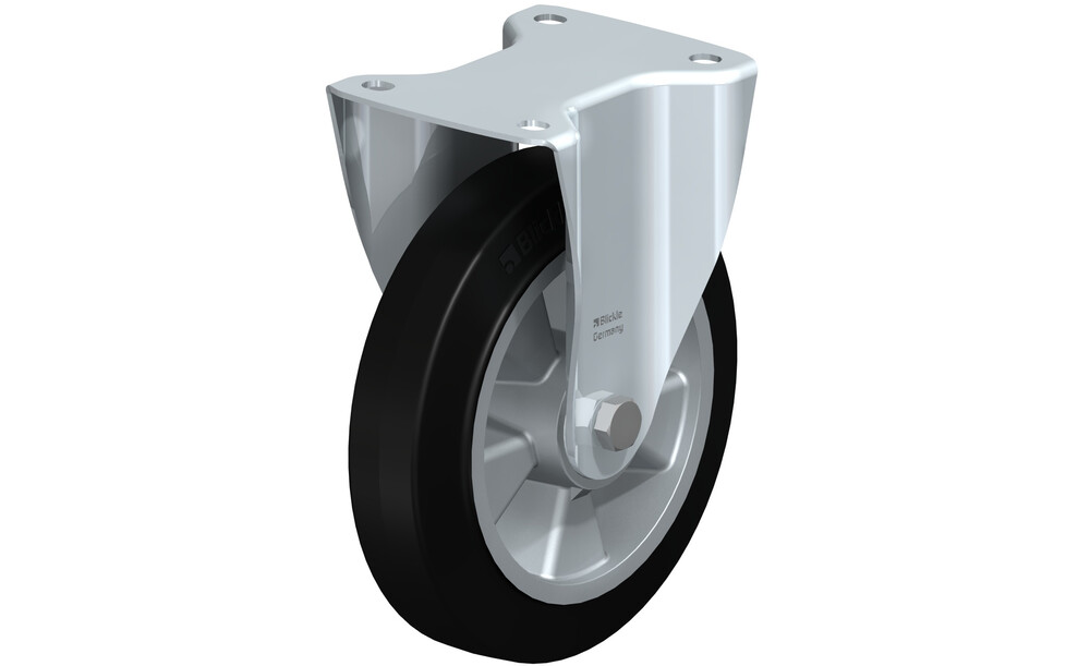 - Reifen: hochwertiger Elastik-Vollgummi "Blickle EasyRoll" in Leichtlaufqualität, Härte 65 Shore A, Farbe schwarz