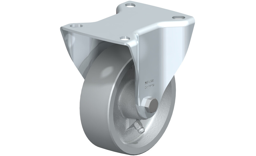 - robuster Grauguss, Härte 180–220 HB, Schmiernippel, lackiert, Farbe silber
