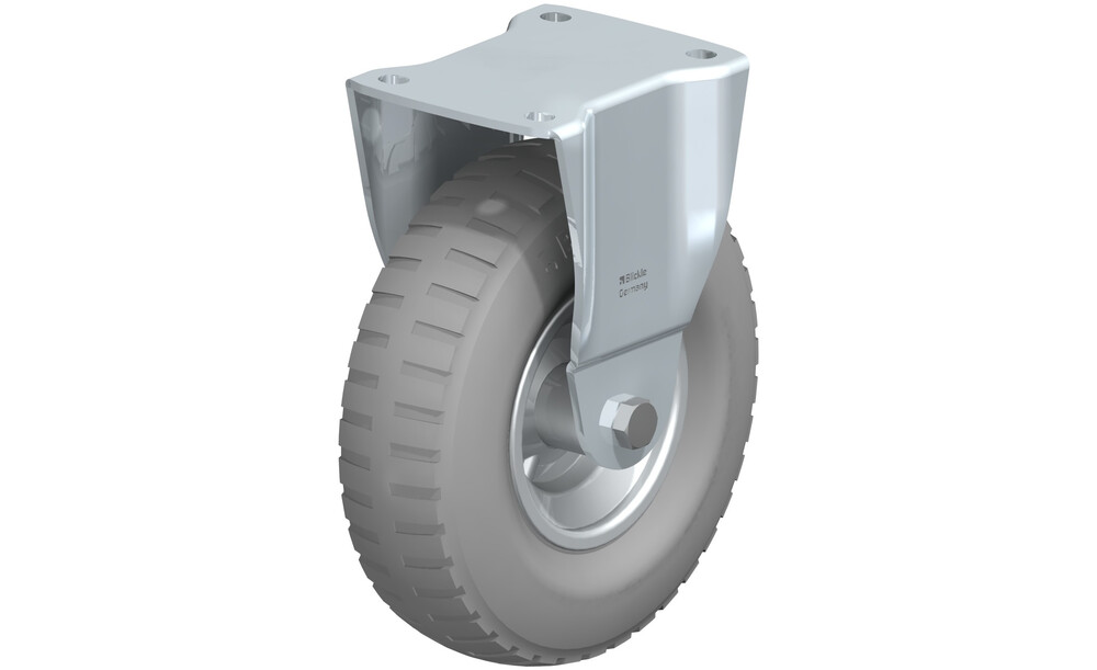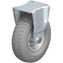 Stahlblech-Bockrolle, mittelschwere Ausführung, mit Anschraubplatte, Rad mit Luftreifen, mit Stahlblech-Felge, spurlos grau