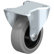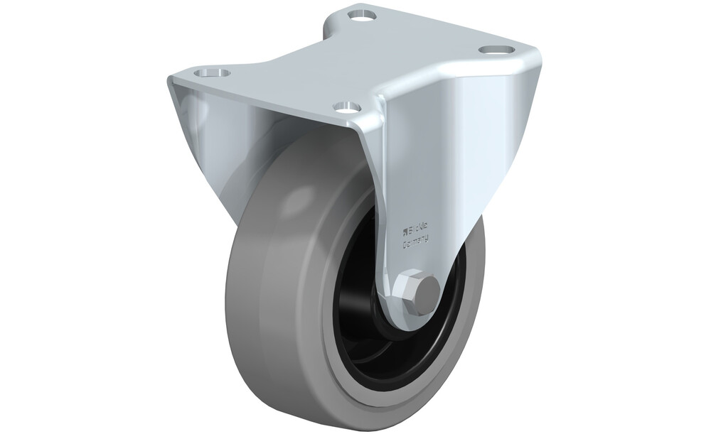 - Reifen: hochwertiger Elastik-Vollgummi "Blickle EasyRoll" in Leichtlaufqualität, Härte 65 Shore A, Farbe grau, spurlos