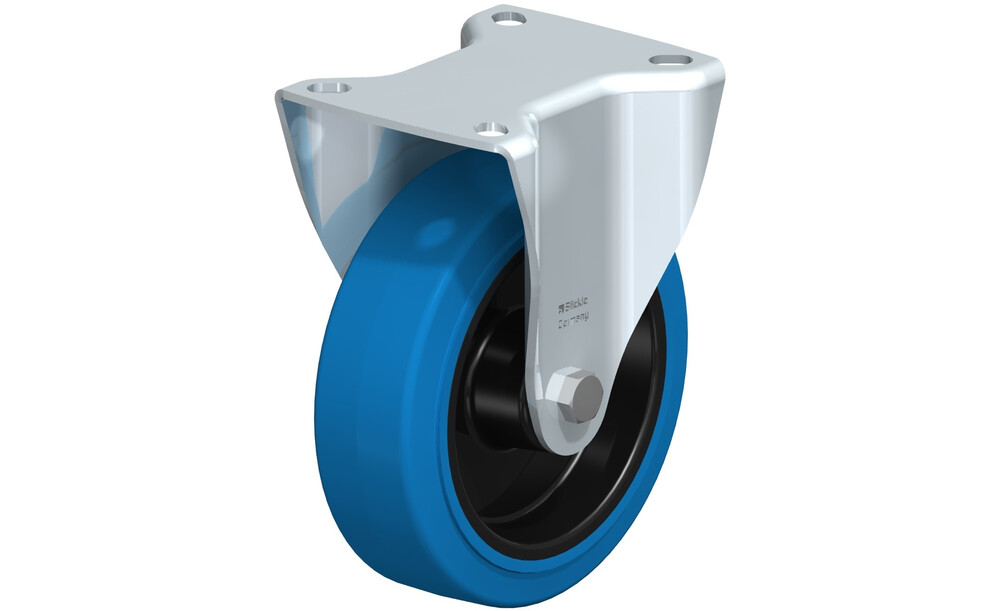 - Reifen: hochwertiger Elastik-Vollgummi "Blickle EasyRoll" in Leichtlaufqualität, Härte 65 Shore A, Farbe grau, spurlos