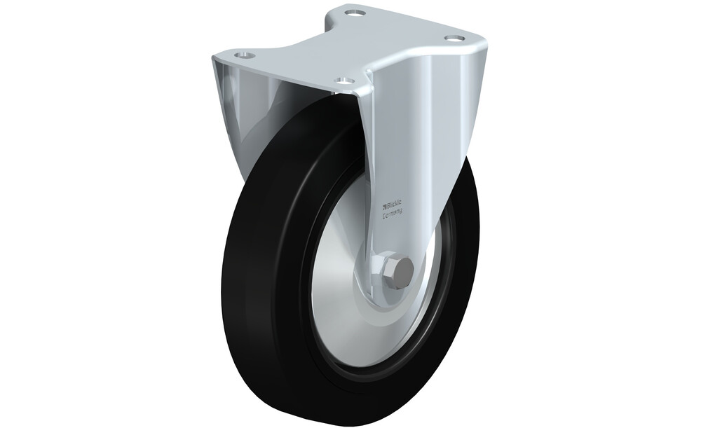- Reifen: hochwertiger Elastik-Vollgummi "Blickle EasyRoll" in Leichtlaufqualität, Härte 65 Shore A, Farbe schwarz