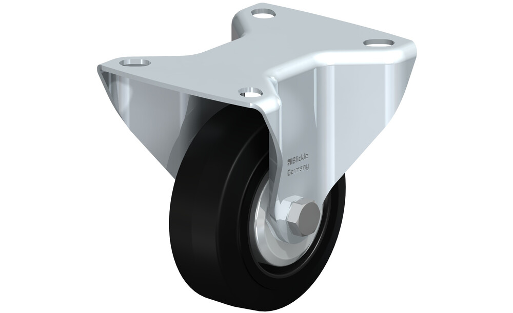 - Reifen: hochwertiger Elastik-Vollgummi "Blickle EasyRoll" in Leichtlaufqualität, Härte 65 Shore A, Farbe schwarz