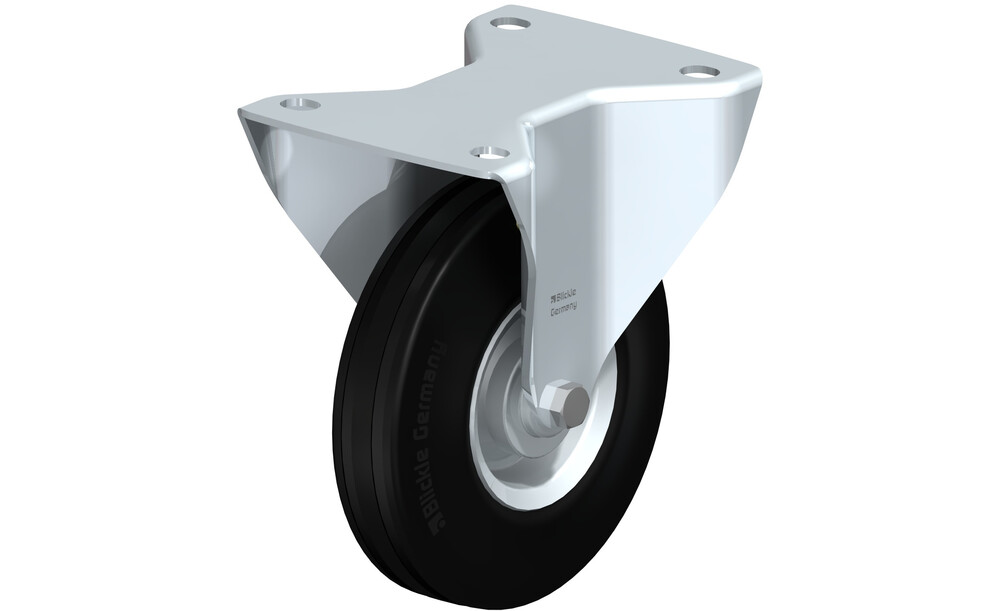 - Reifen: Zweikomponenten-Vollgummi "Blickle Comfort", Härte 65 Shore A, Farbe schwarz