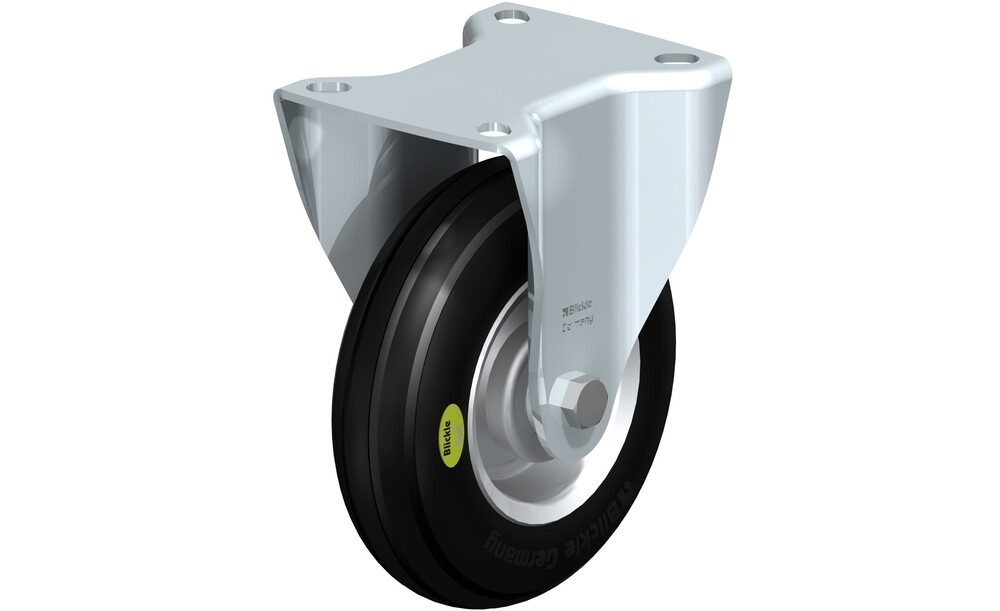 - Reifen: Weichgummi "Blickle Soft", Härte 50 Shore A, Farbe schwarz (Rad-Ø 260 mm zusätzlich mit hartem Reifenfuß)