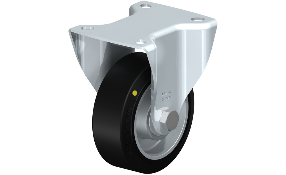 • Reifen: hochwertiger Elastik-Vollgummi "Blickle EasyRoll" in Leichtlaufqualität, Härte 71 Shore A, Farbe schwarz