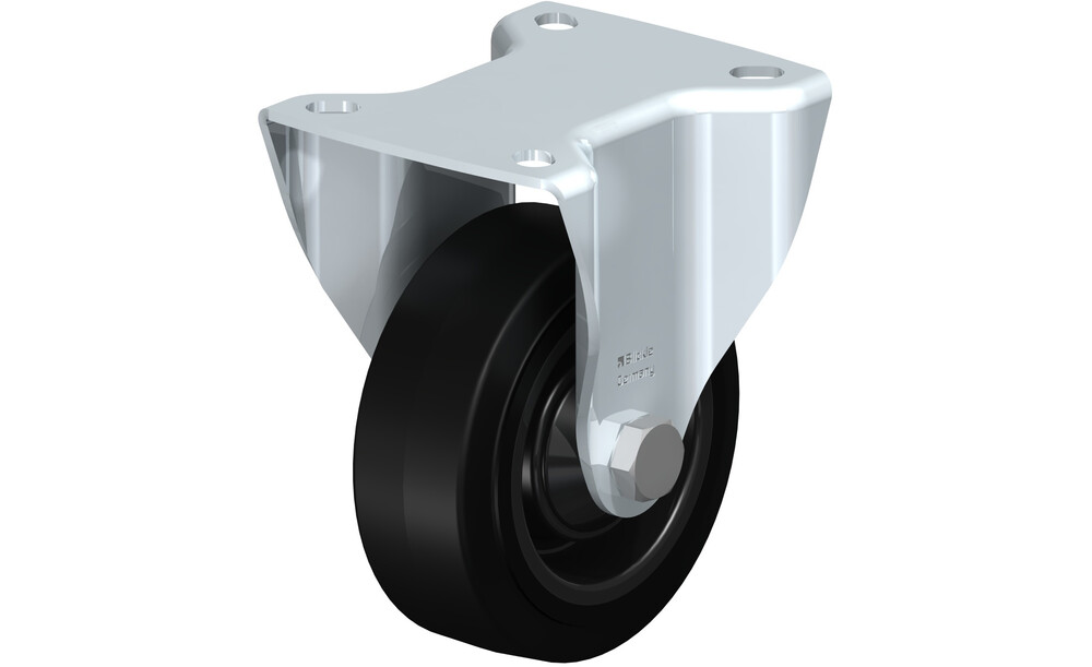 - Reifen: hochwertiger Elastik-Vollgummi "Blickle EasyRoll" in Leichtlaufqualität, Härte 65 Shore A, Farbe schwarz