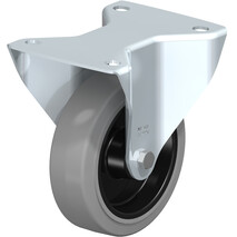 - Reifen: hochwertiger Elastik-Vollgummi "Blickle EasyRoll" in Leichtlaufqualität, Härte 65 Shore A, Farbe grau, spurlos