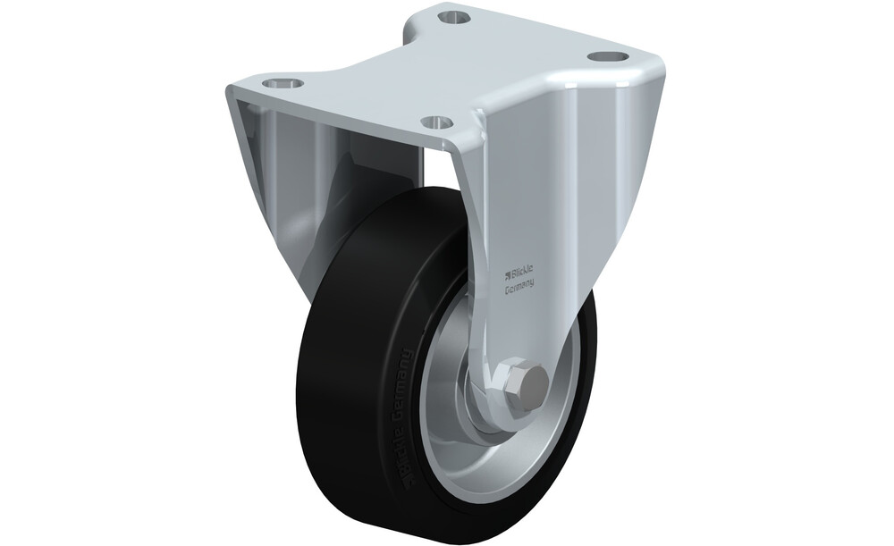 - Reifen: hochwertiger Elastik-Vollgummi "Blickle EasyRoll" in Leichtlaufqualität, Härte 65 Shore A, Farbe schwarz