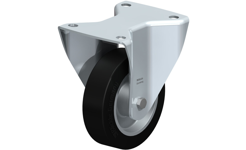 - Reifen: hochwertiger Elastik-Vollgummi "Blickle EasyRoll" in Leichtlaufqualität, Härte 65 Shore A, Farbe schwarz