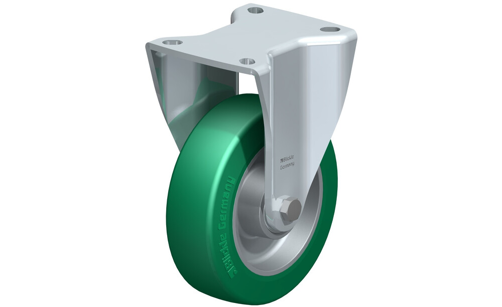 • Laufbelag: hochwertiges Polyurethan-Elastomer Blickle Softhane®, Härte 75 Shore A, Farbe grün, spurlos, kontaktverfärbungsfrei