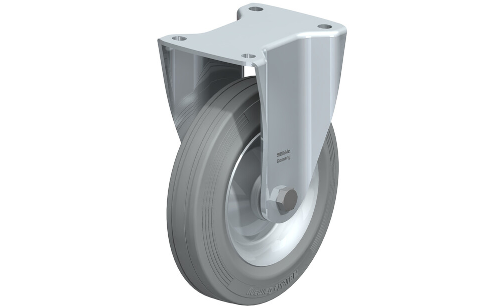 - Reifen: Zweikomponenten-Vollgummi "Blickle Comfort", Härte 56 Shore A, Farbe grau