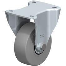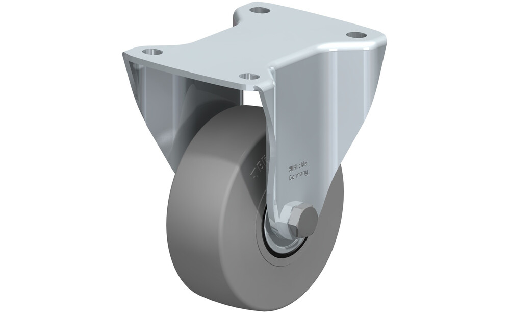 - Reifen: hochwertiger Elastik-Vollgummi "Blickle EasyRoll" in Leichtlaufqualität, Härte 65 Shore A, Farbe grau, spurlos