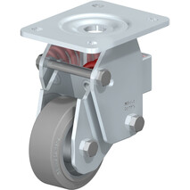 - Reifen: hochwertiger Elastik-Vollgummi "Blickle EasyRoll" in Leichtlaufqualität, Härte 65 Shore A, Farbe grau, spurlos