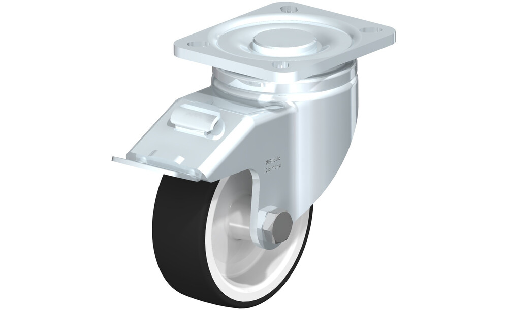Stahlblech-Lenkrolle, Schwerlast-Ausführung, mit Anschraubplatte, mit Feststeller 'stop-fix',